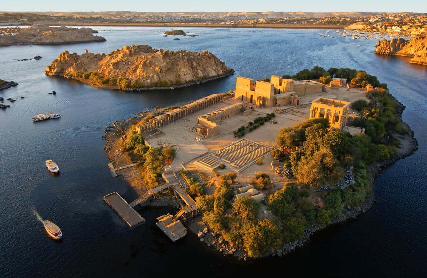 El asombroso Templo de Philae se encuentra en la isla de Philae, entre las antiguas y nuevas presas de Asuán. Es uno de los templos más hermosos de Asuán y de Egipto en general. El templo fue trasladado a su ubicación actual después de la construcción de la Alta Presa, que amenazaba con sumergirlo permanentemente.