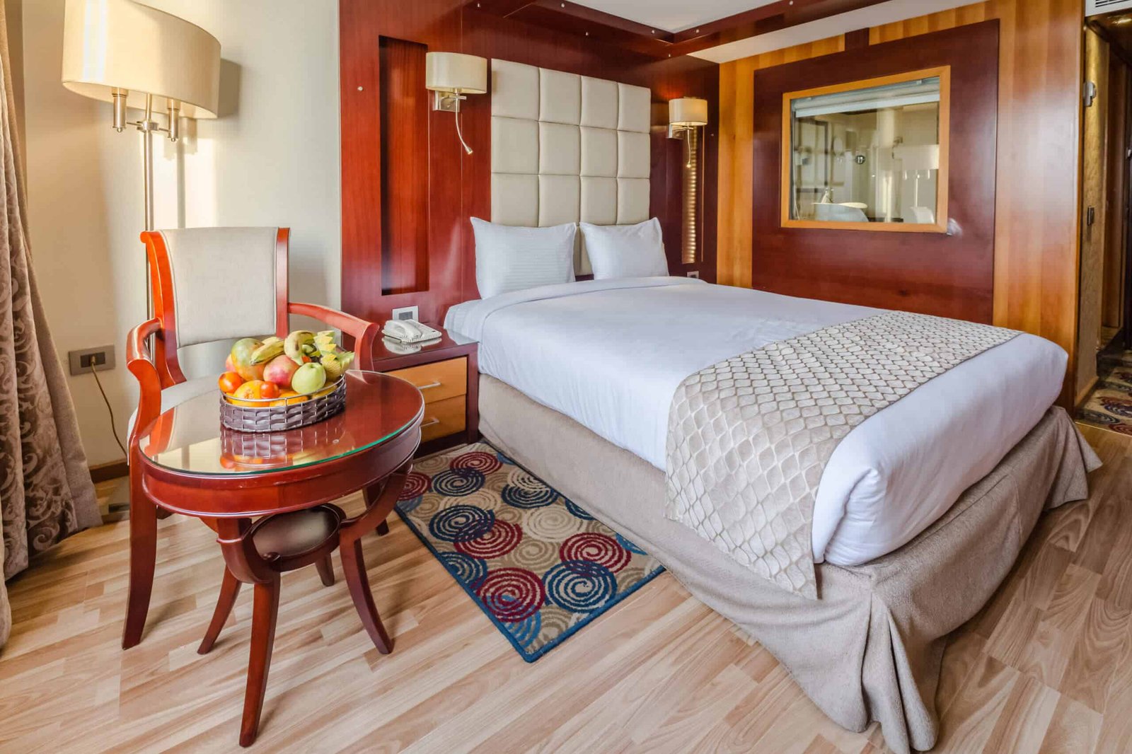 Bienvenido a bordo del Crucero del Nilo MS Blue Shadow II, donde el lujo, la comodidad y la aventura se unen para ofrecer un viaje incomparable a lo largo del eterno río Nilo. Adéntrate en un mundo de elegancia y sofisticación mientras nos embarcamos en un viaje inolvidable a través del corazón del antiguo Egipto.