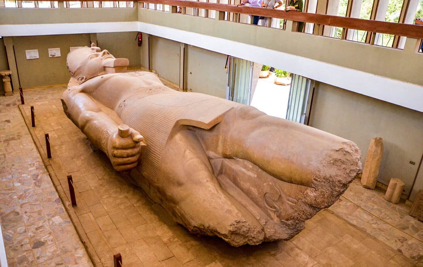 Menfis, la capital del antiguo Egipto desde el 3100 hasta el 2040 a.C., Narmer, el primer faraón, fundó la ciudad de Menfis. Se encuentra en el Delta del Nilo entre el Alto y el Bajo Egipto y contiene una enorme estatua de Ramsés II y varios otros monumentos.