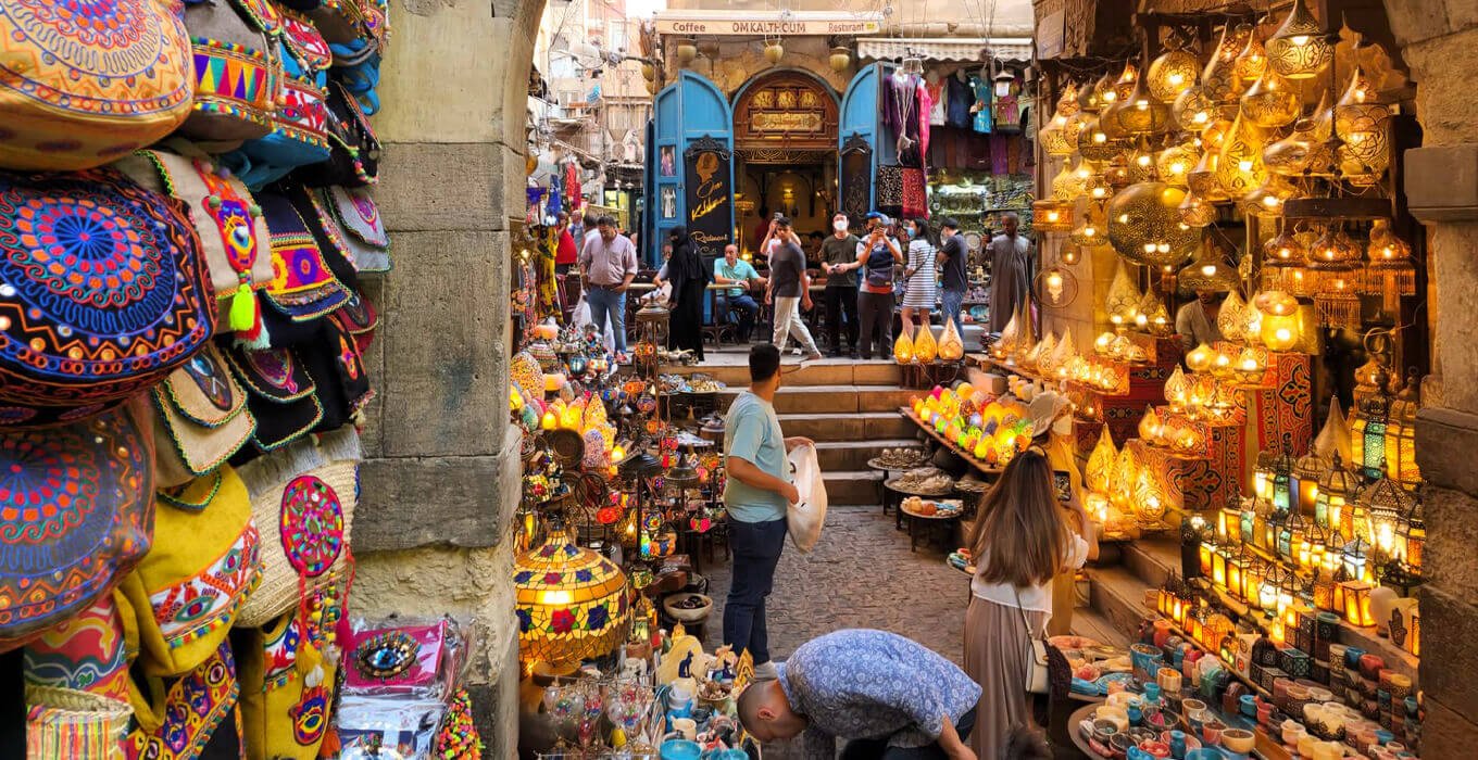 - Sumerge en la vibrante atmósfera de los mercados tradicionales, como el famoso Bazar Khan El Khalili.