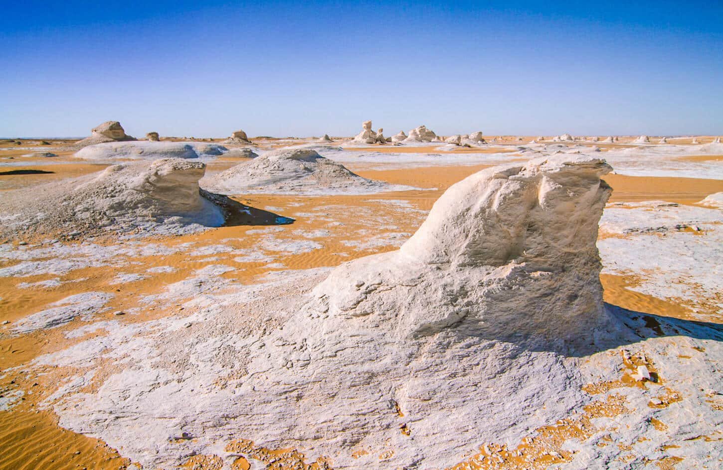 La Reserva Nacional del Desierto Blanco en el Desierto Occidental de Egipto. Cubre un área de aproximadamente 2,200 millas cuadradas. El parque es conocido por su paisaje blanco tiza único, que ha resultado de la erosión a lo largo de muchos años. El Desierto Blanco es hogar de muchas especies de animales, incluido el zorro del desierto en peligro de extinción. Las personas que visitan el parque pueden hacer cosas como acampar, hacer senderismo y montar a caballo.
