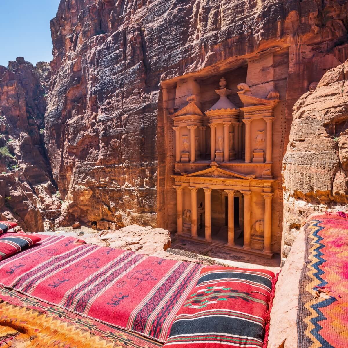 En este circuito de 15 días por Egipto y Jordania, el undécimo día se convierte en el más esperado por muchos, ya que lo dedicamos por completo a la visita de Petra, la legendaria capital del antiguo imperio nabateo, conocida como la «Ciudad Rosa». Este sitio, inscrito como Patrimonio de la Humanidad por la UNESCO y una de las Siete Maravillas del Mundo Moderno, es un tesoro arqueológico único.